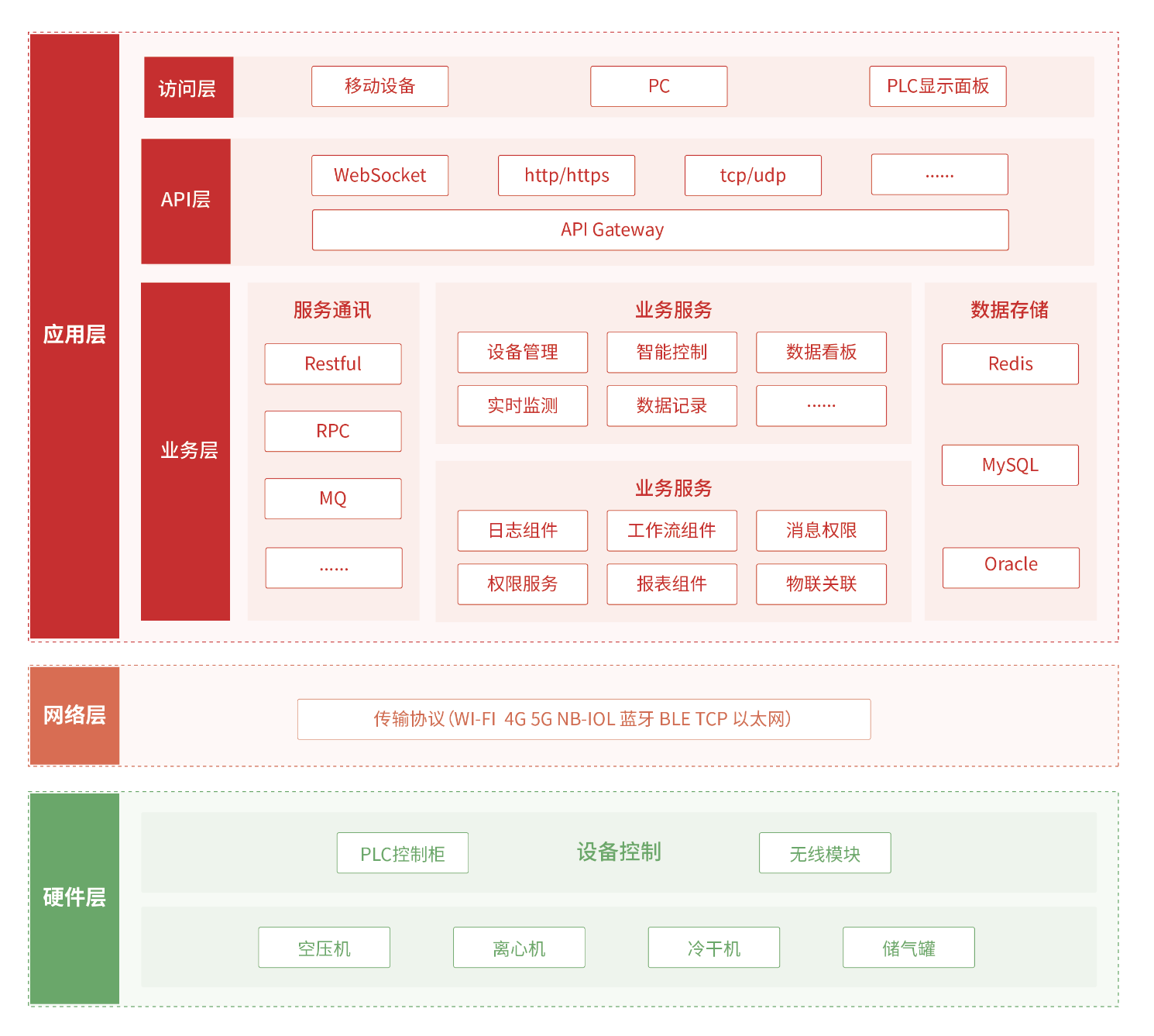 空氣壓縮機是實現生產工藝自動化的重要手段,在鋼鐵、有色金屬冶煉、造船、紡織、化纖、汽車、輪胎等行業中普遍使用。空壓機長時間處于運行狀態中,維護難度較大,傳統維護手段主要依賴人工巡檢,難以及時發現故障,由此帶來的長時間停機會給客戶帶來巨大損失。此外,人工巡檢還存在諸多弊端,如成本高、效率低、難以捕捉全部隱患、信息上傳不及時等問題。并傳統的空壓機控制系統一般采用定時啟停或壓力開關控制方式,無法根據實際工況自動調節壓縮機的負載、運行狀態和供氣量,因此無法達到最佳運行效果。