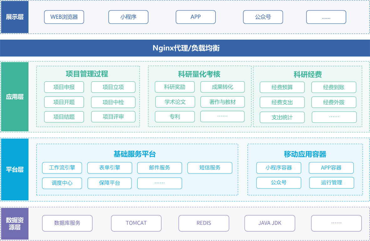 智慧科研綜合管理平臺通過對項目進度、資源、經(jīng)費、成果等信息的全方位管理,將項目的過程信息整合,自動建立過程文檔,同時為學(xué)校提高科研成果、獲獎情況及日常科研活動的查詢統(tǒng)計,并且支持自動生成科研人員績效考核信息,并對教育部門要求的科研統(tǒng)計數(shù)據(jù)進行上報,使得科研主管部門對項目的資源分配更合理項目執(zhí)行過程更透明并有據(jù)可依,提升科研能力及辦事效率。