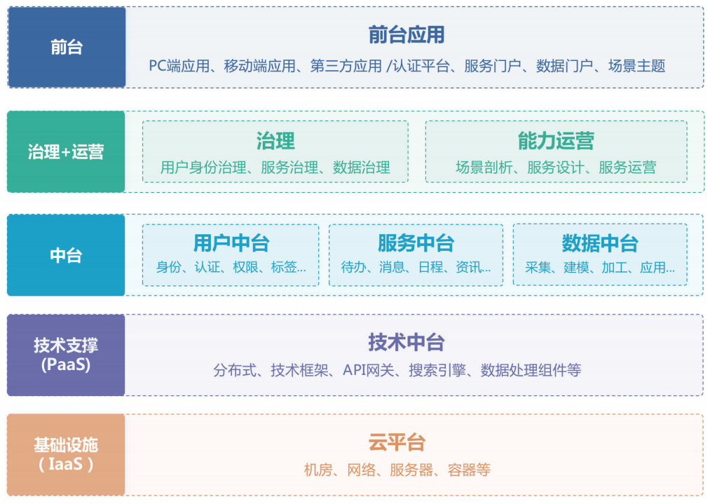 “中臺(tái)”是一種設(shè)計(jì)與治理的建設(shè)思路,表面上是銜接“前臺(tái)”和“后臺(tái)”的技術(shù)架構(gòu),實(shí)際上也是一種高效管理的理念,強(qiáng)調(diào)通過(guò)治理重塑業(yè)務(wù)和數(shù)據(jù)流程,打通業(yè)務(wù)間的壁壘,提升用戶服務(wù)體驗(yàn)。從技術(shù)角度推動(dòng)構(gòu)建更創(chuàng)新靈活的組織機(jī)制、業(yè)務(wù)機(jī)制、數(shù)據(jù)機(jī)制,建設(shè)智慧校園“標(biāo)準(zhǔn)·復(fù)用·賦能”服務(wù)新生態(tài)。