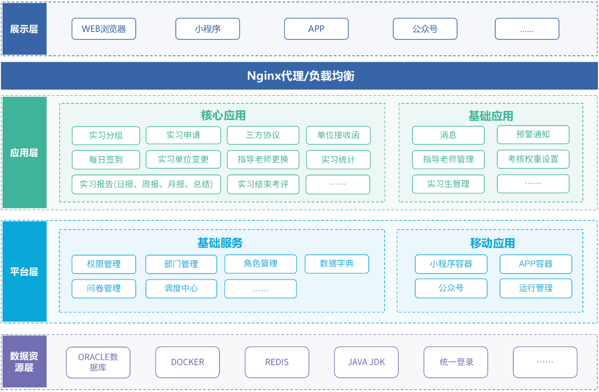 主要是對學生實習全過程進行管理、監控、評價,對學生安全的進行動態監控,將被動的事后處理,變為主動的事前預防、事中處理;通過信息化手段掌握的實習生實習情況和指導老師情況,規范化的管理學校實習工作,實現多渠道信息交流,記錄學校歷年學生實習的過程,實現對教學問題的解決,學校根據頂崗實習的數據為以后學校的發展作出更準確的決策。